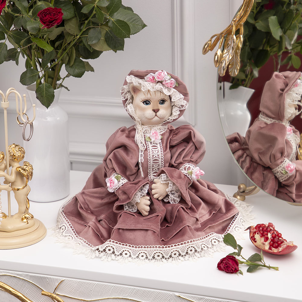 Коллекционная игрушка Кошка Фике - это не просто предмет интерьера, а настоящее произведение искусства.Каждая коллекционная кукла производится тиражом не более 500 экземпляров. Голова игрушки отлита из натурального коелгинского мрамора, отшлифована и разрисована вручную.Одежда отшивается в собственном текстильном цеху по дизайнерским выкройкам.