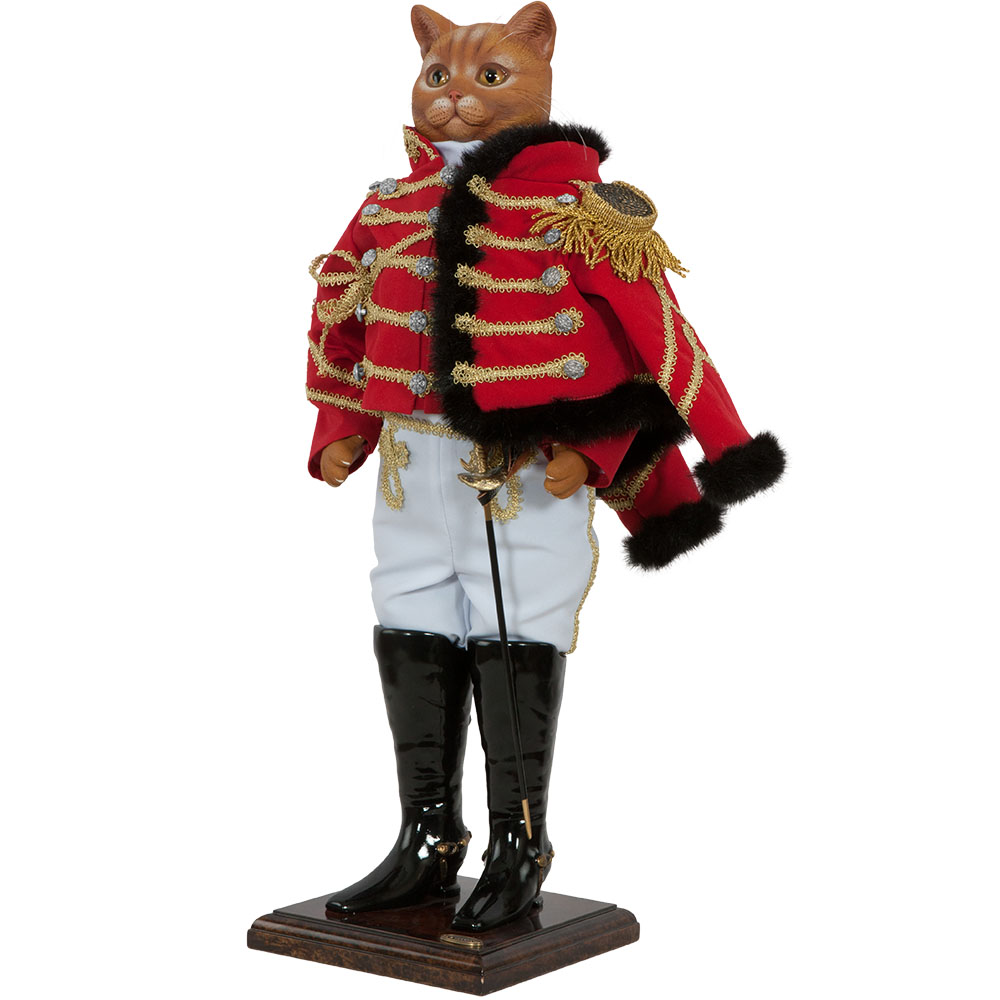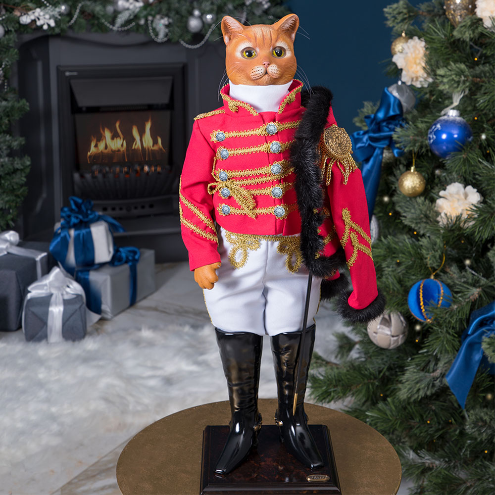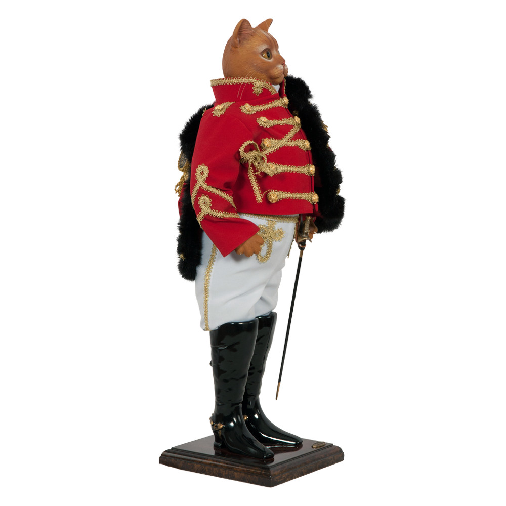 Коллекционная кукла Кот Гусар Ламберт выполнена на основе металлокаркаса, что обеспечивает изделию стойкость.