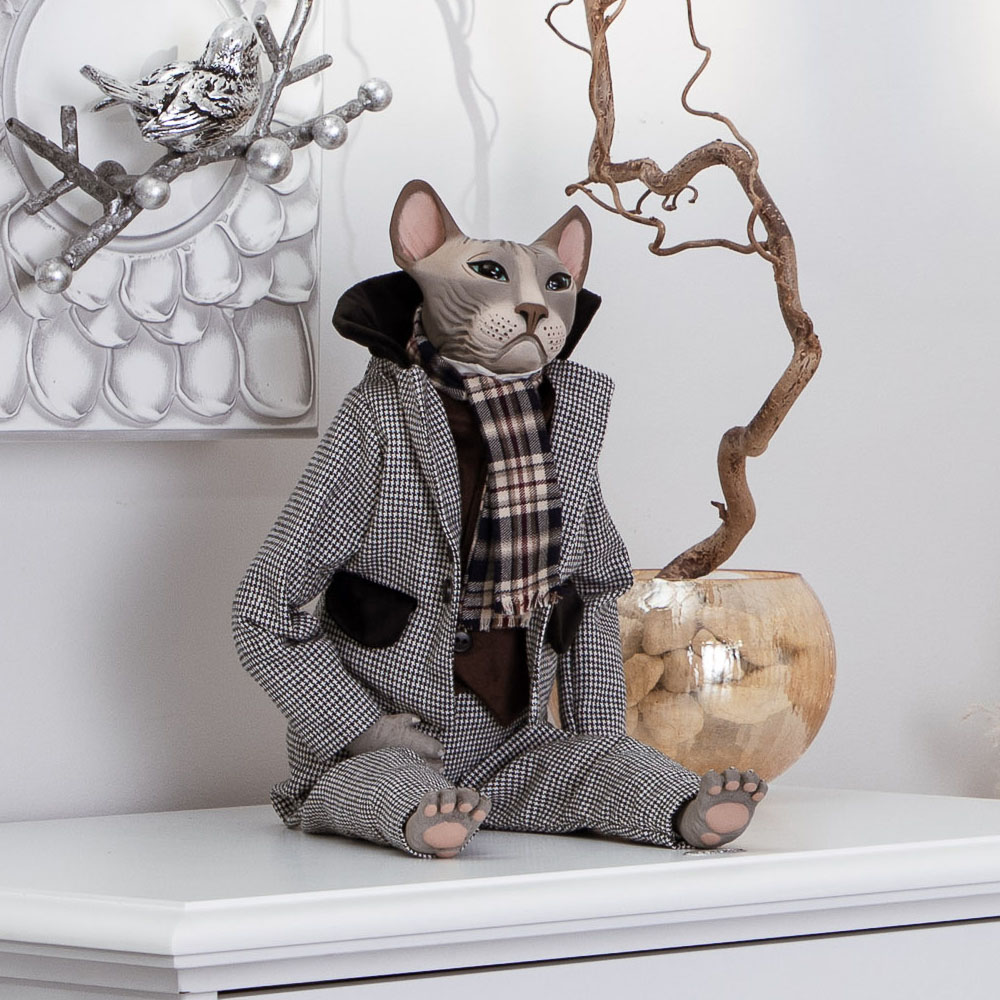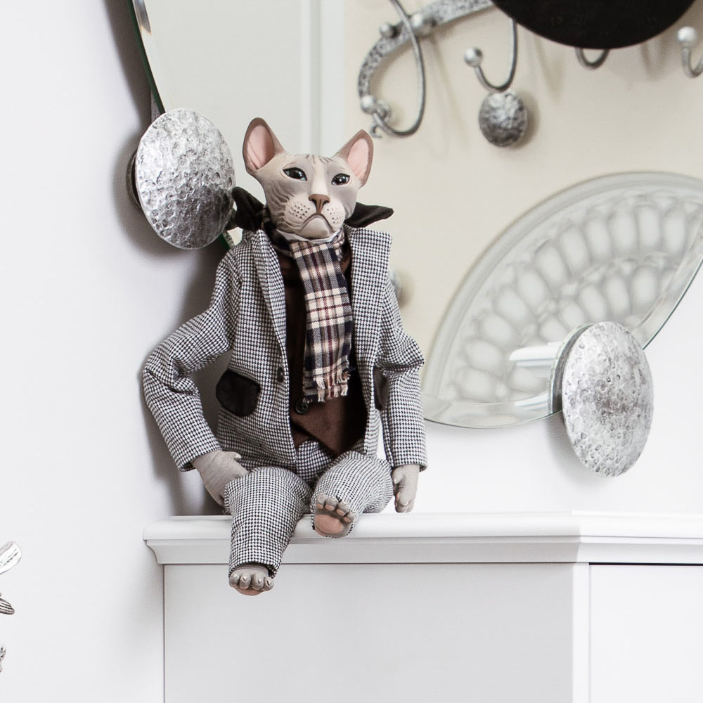 Коллекционная кукла BOGACHO Кот Пьер (ручная работа) - это не просто предмет интерьера, а настоящее произведение искусства.Каждая коллекционная кукла производится тиражом не более 500 экземпляров. Голова игрушки отлита из натурального коелгинского мрамора, отшлифована и разрисована вручную.Одежда отшивается в собственном текстильном цеху по дизайнерским выкройкам.