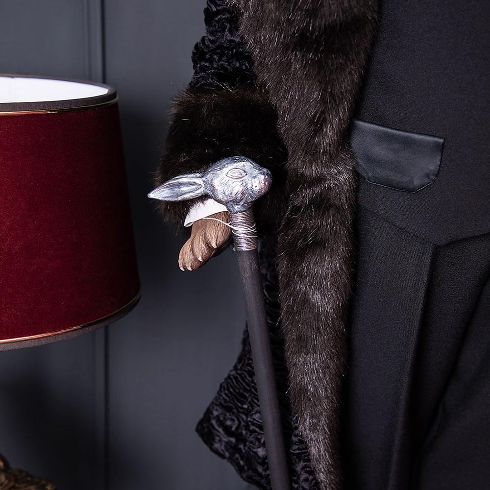 Трость - бук, декоративный наконечник мрамор с росписью под серебро.