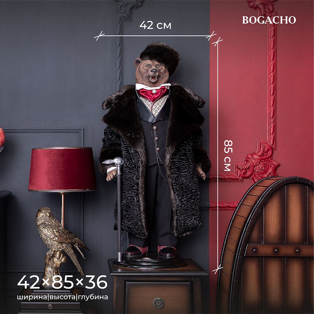 Материалы изготовления и размеры изделия1. Голова, лапы, ботинки: литьевой мрамор, ручная роспись акриловыми красками Италия, глаза покрыты глянцевым лаком. Технология нанесения краски - «сухая кисть»;