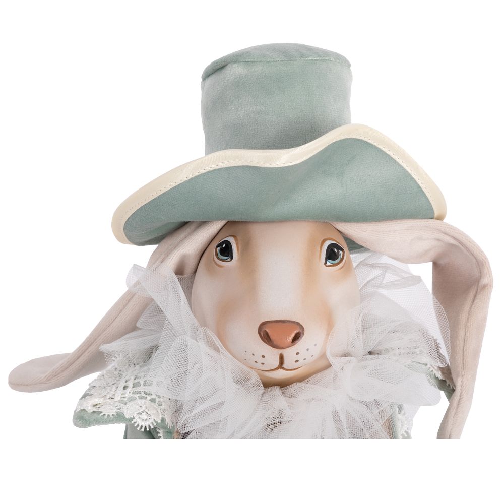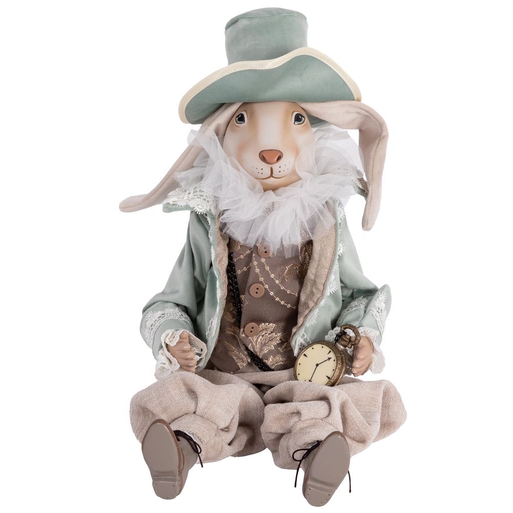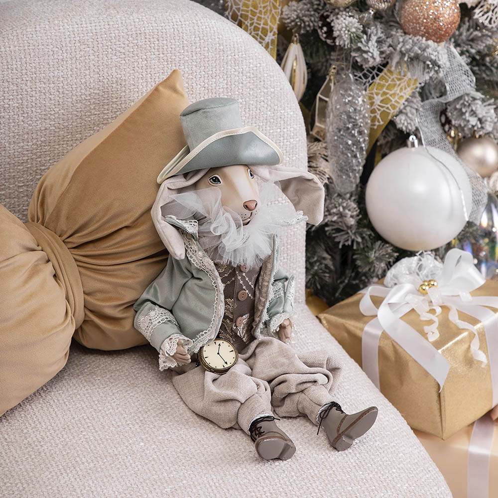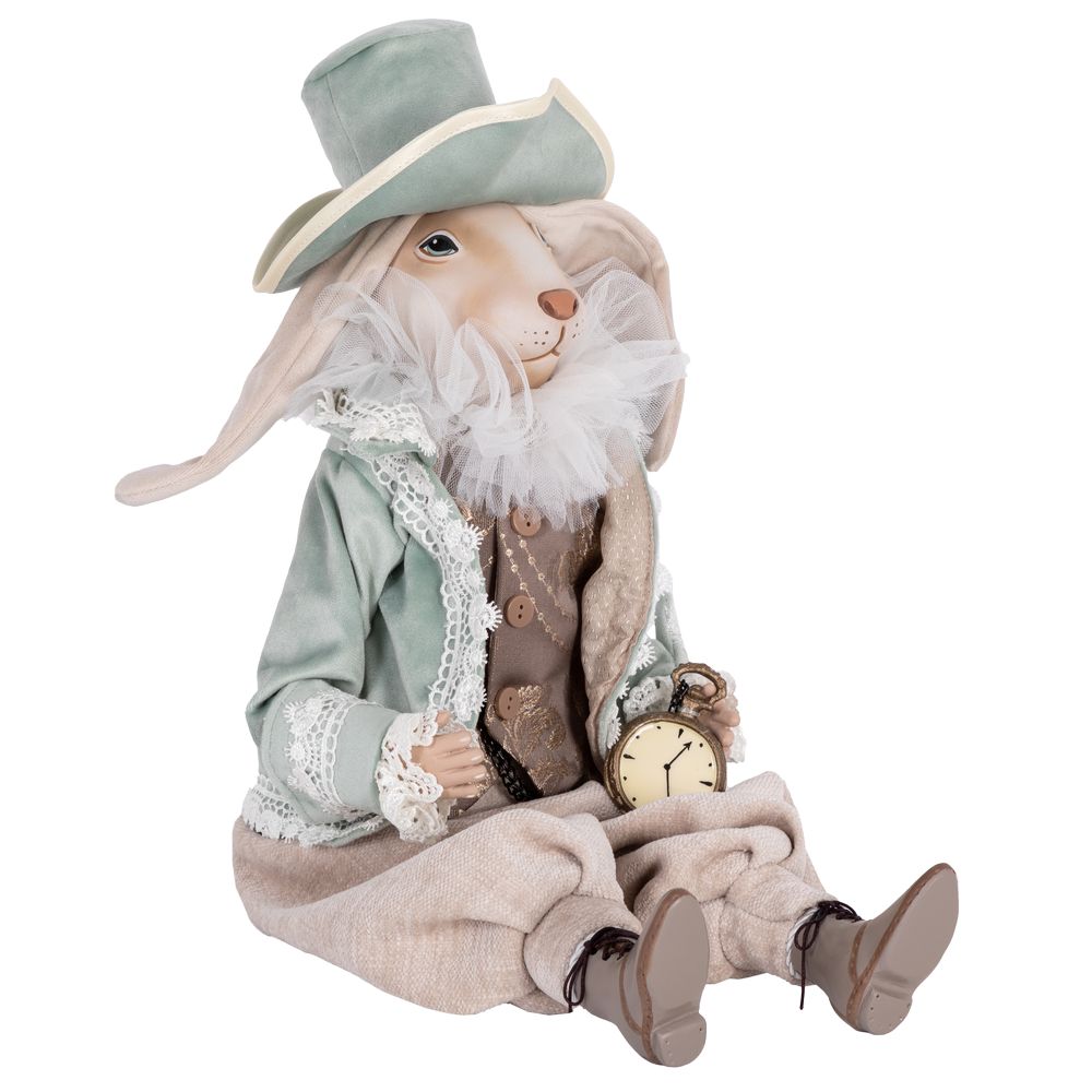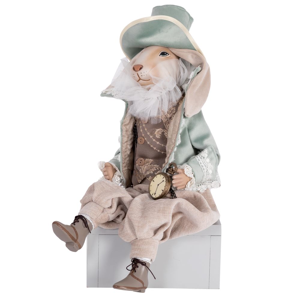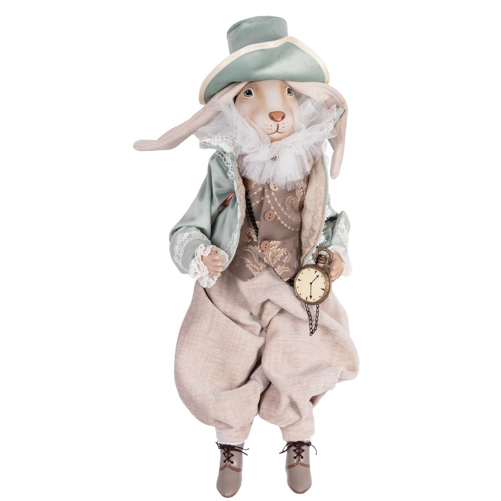 Мистер ЭгльСобиратель сказок Эгль стал прототипом нашей коллекционной куклы. Доброта, загадочность, открытость и ум – качества, вдохновившие мастеров и дизайнеров BOGACHO на создание кролика Эгля по образу знаменитого литературного героя.У Мистера Эгля бескаркасные мягкие ноги, поэтому его можно посадить на столик или полку. Голова и лапки отлиты из мрамора, в руках и тканевых ушках находится проволока. Тело сделано из стрейчевой ткани и холофайбера. Хвостик – искусственный мех.Элегантный костюм включает в себя множество деталей и отлично проработан: шляпа из вельвета, украшенная атласной лентой, жаккардовые брюки и жилет, фатиновый воротничок, вельветовый пиджак с утонченным французским кружевом и аккуратные мраморные часы, расписанные акрилом вручную. Металлическая брошь с затейливыми узорами украшает воротник.Для создания эффекта «натуральной слезы» при росписи глаз мастера используют специальный акриловый даммарный лак, который увеличивает блеск, переливы и свечение.