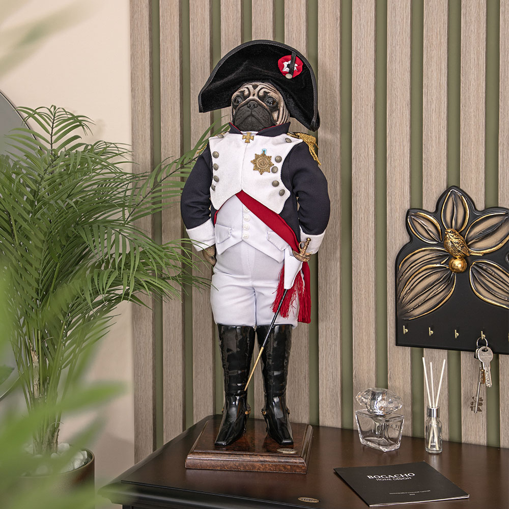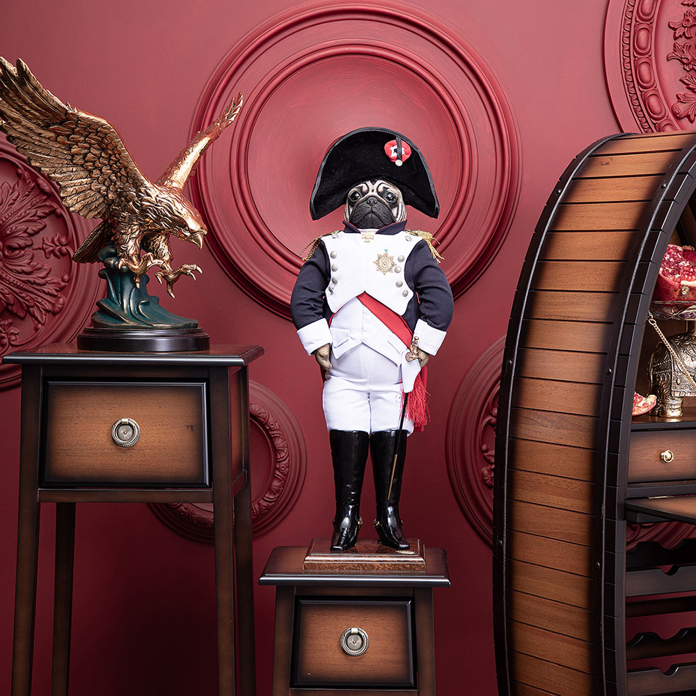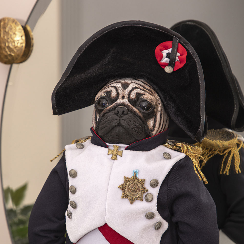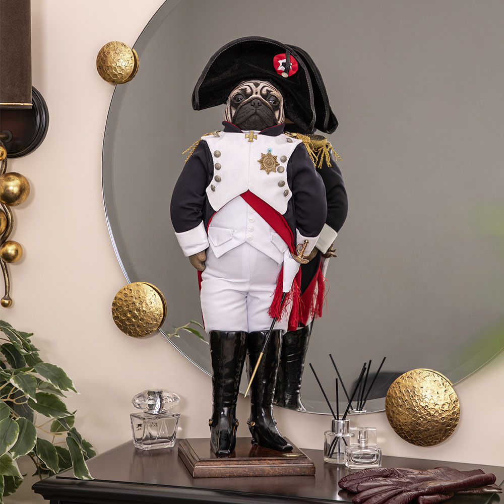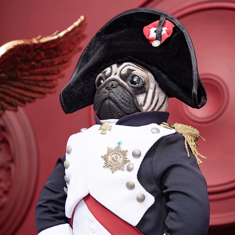 Прототипом коллекционной куклы «Собака Мопс Бонапарт» является великий полководец и государственный деятель, заложивший основы современного французского государства - император Франции Наполеон Бонапарт.
