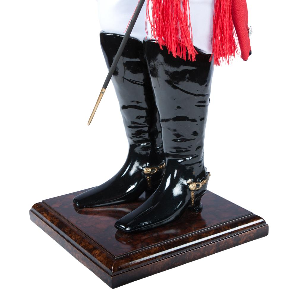 Материалы изготовления и размеры изделияКукла выполнена на основе металлокаркаса, что обеспечивает изделию стойкость. Для придания кукле формы используют синтепон. Голова, руки и ноги изготавливаются из высококачественного коелгинского мрамора, который привозится в виде мраморной крошки, затем отливается в формы и раскрашивается акриловыми красками вручную. При пошиве костюмов используются Европейские ткани.