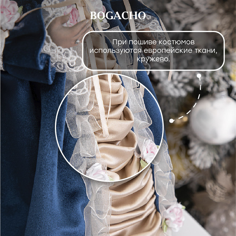 Для придания кукле формы используются синтепон. Голова, руки и ноги изготавливаются из высококачественного коелгинского мрамора, который привозится в виде мраморной крошки, затем отливается в формы и раскрашивается акриловыми красками вручную. При пошиве костюмов используются европейские ткани, кружево.