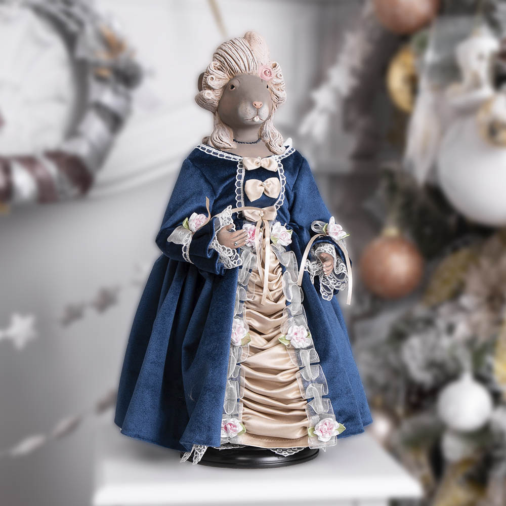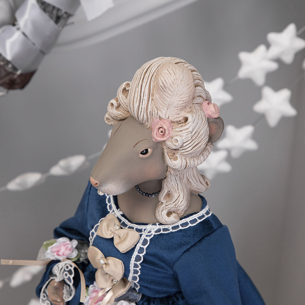 Коллекционная кукла Мышильда выполнена на основе металлокаркаса, что обеспечивает изделию стойкость.