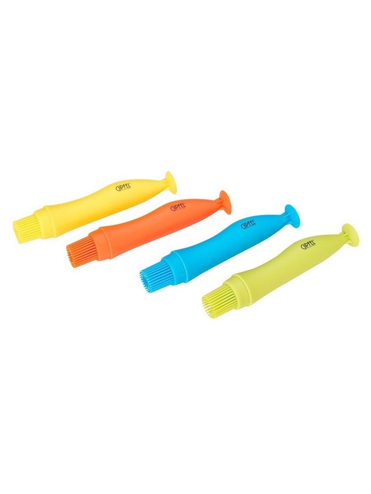 Щетки с силиконовой щетиной. Изделия имеют размеры 16,1 × 3,2 см и представлены в четырех цветовых вариациях (желтый, салатовый, синий, оранжевый). Аксессуары изготовлены из прочного пищевого силикона. Материал отличается износостойкостью, не выделяет вредных веществ и полностью безопасен для здоровья человека. Такая силиконовая щеточка пригодится на кухне каждой хозяйке. С ее помощью удобно смазывать маслом противень или сковороду, а также поверхность пирожков перед их выпечкой. Изделия можно мыть вручную или в посудомоечном аппарате. Для чистки нельзя применять металлические скребки и агрессивные моющие средства. Доступные цвета: желтый, оранжевый, синий, зеленый.