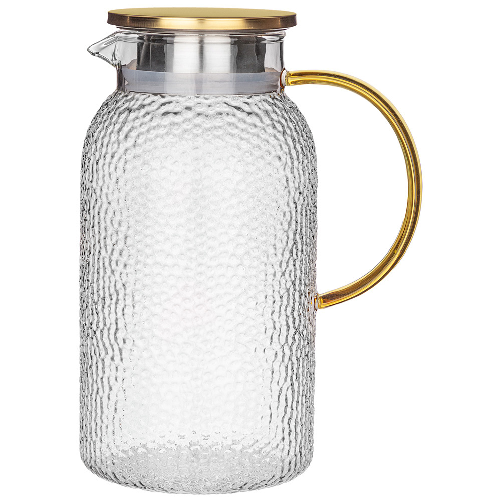 Кувшин оснащен удобной ручкой и плотно закрывающейся крышкой.