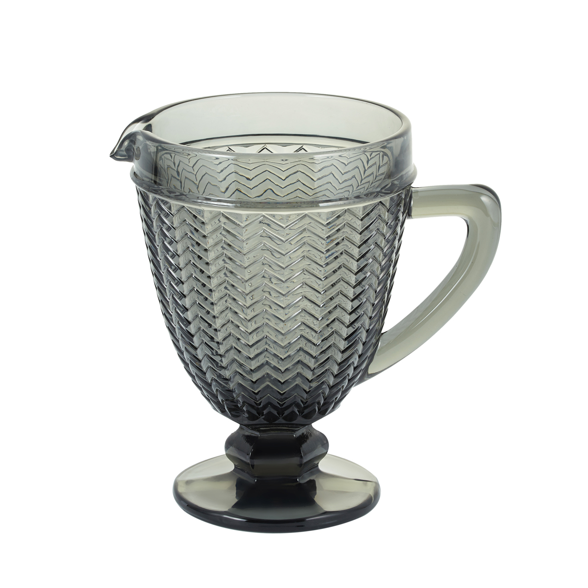 Кувшин Gipfel GREY WAVE 41270. Размер 19,5x14 см. Кувшин с ручкой сделан из толстого серого стекла с рифленой поверхностью. Сочетается на сервированном столе с наборами бокалов коллекции GREY WAVE.