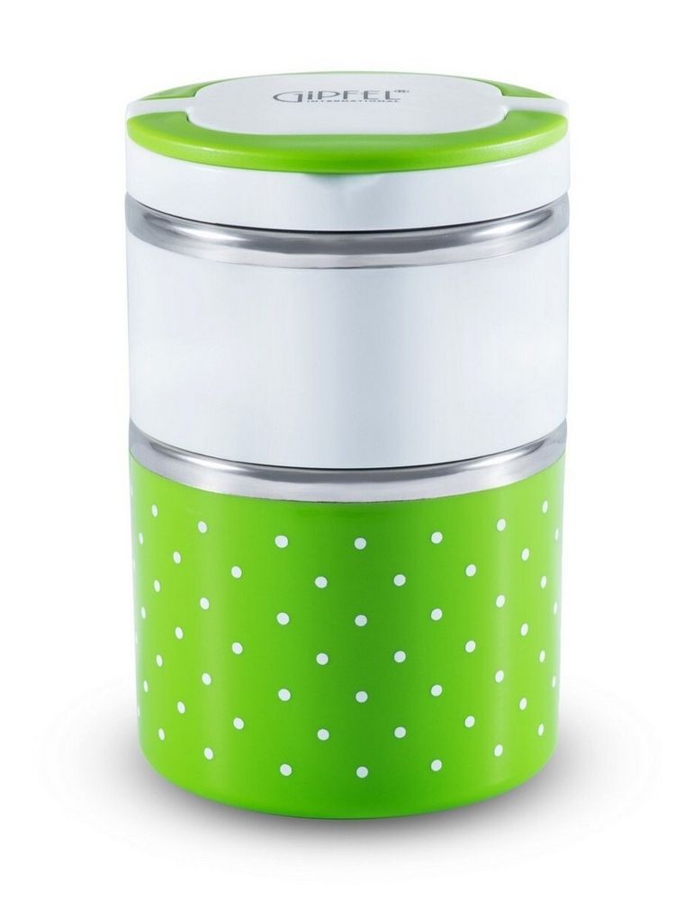 Ланч-бокс Gipfel 4128 гигиеничен и герметичен. Благодаря использованию современных материалов, он не поглощает запахов и не выделяет их на продукты питания, сохраняя их вкусовые свойства неизменными. Контейнер изготовлен из нержавеющей стали и пластика. Крышка прилегает к изделию достаточно плотно, что позволяет не переживать по поводу сохранности жидких продуктов. Ланч-бокс имеет два отделения для продуктов. Высота 17 см, диаметр 11 см.
