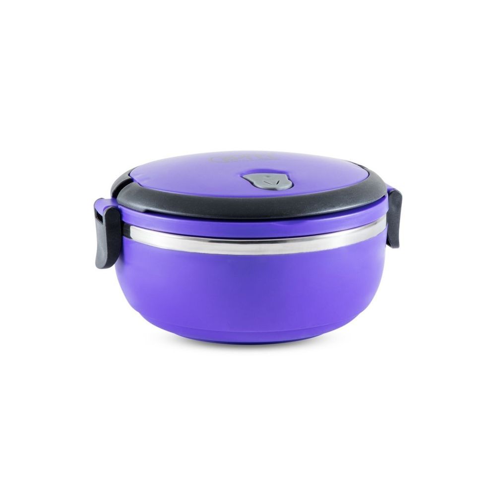 Ланч-бокс Gipfel 4130. Круглый контейнер имеет объем 600мл. На крышке складывающаяся ручка, по бокам надежные фиксаторы. Контейнер подойдет для переноски вторых блюд и бутербродов. Сделан из нержавеющей стали и пластика фиолетового цвета.