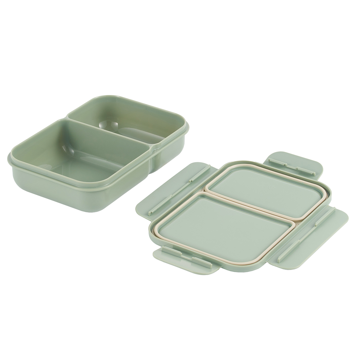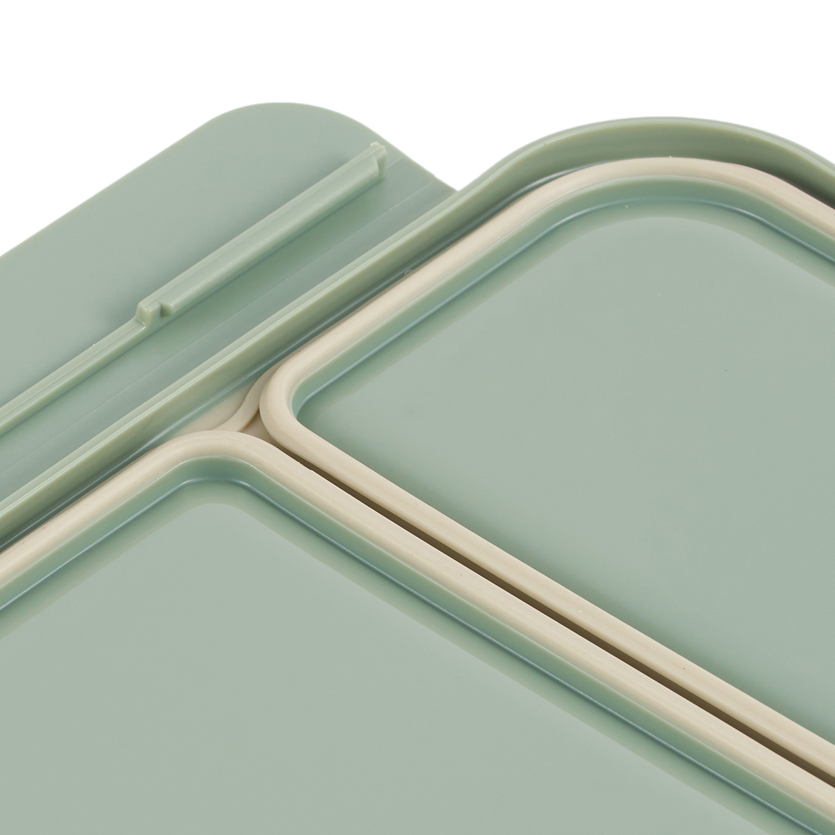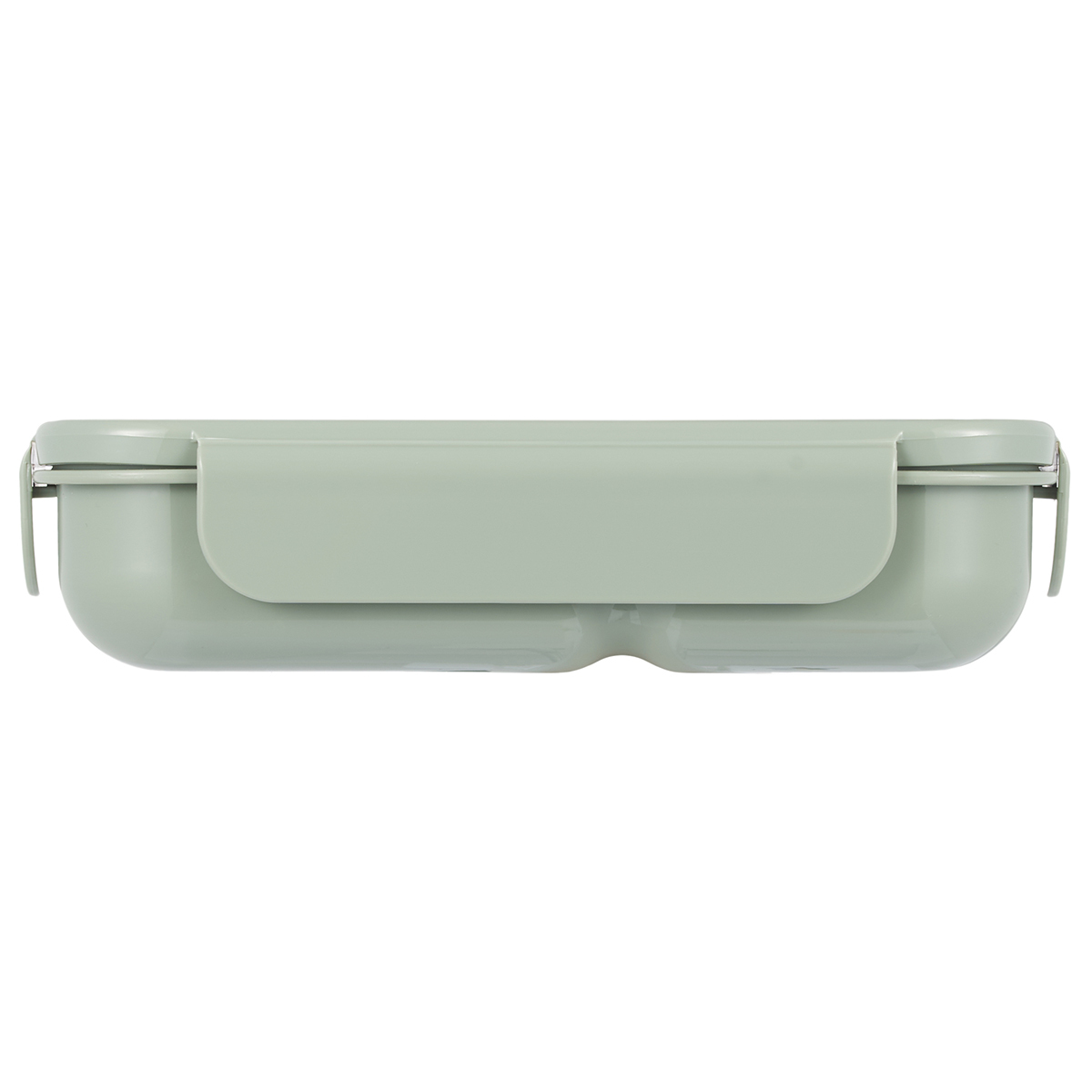 Ланч-бокс выполнен в стильном светло-зеленом цвете, подойдет и взрослому, и ребенку.