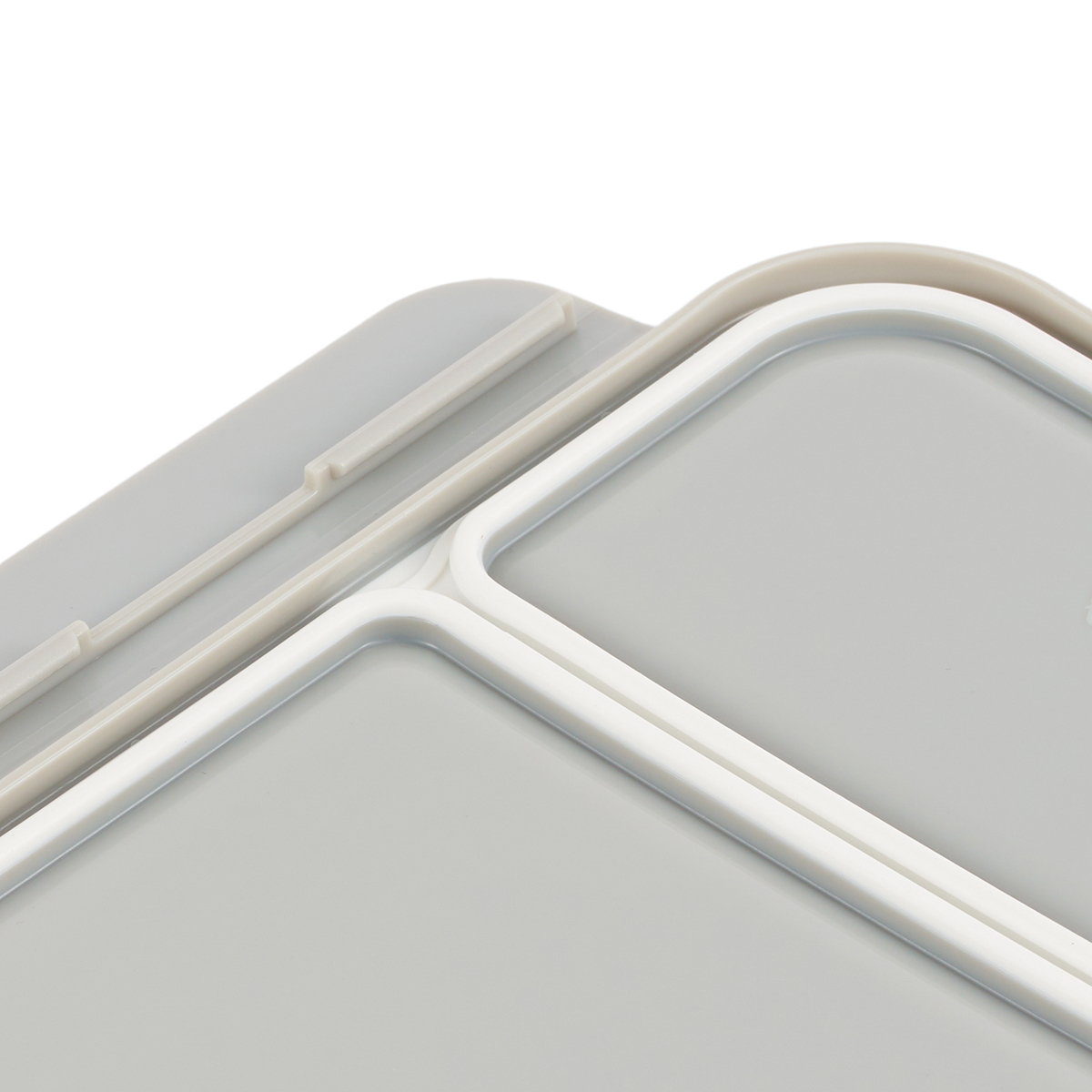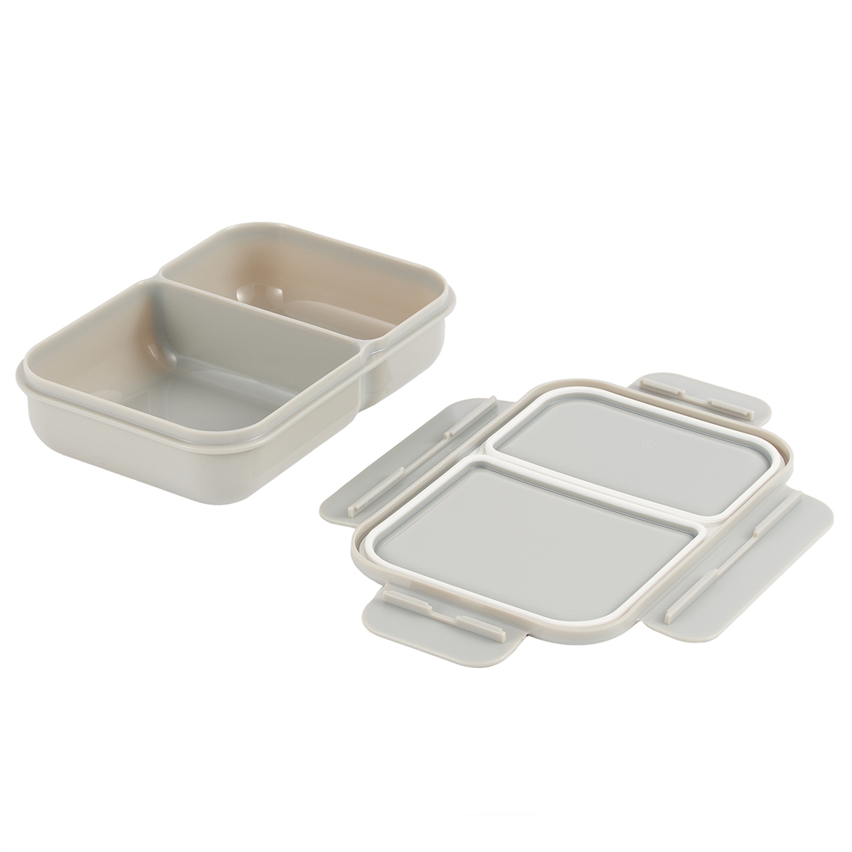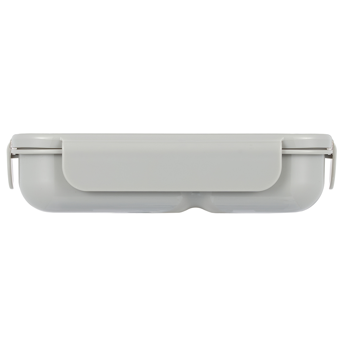 Ланч-бокс выполнен в стильном светло-сером цвете, подойдет и взрослому, и ребенку.