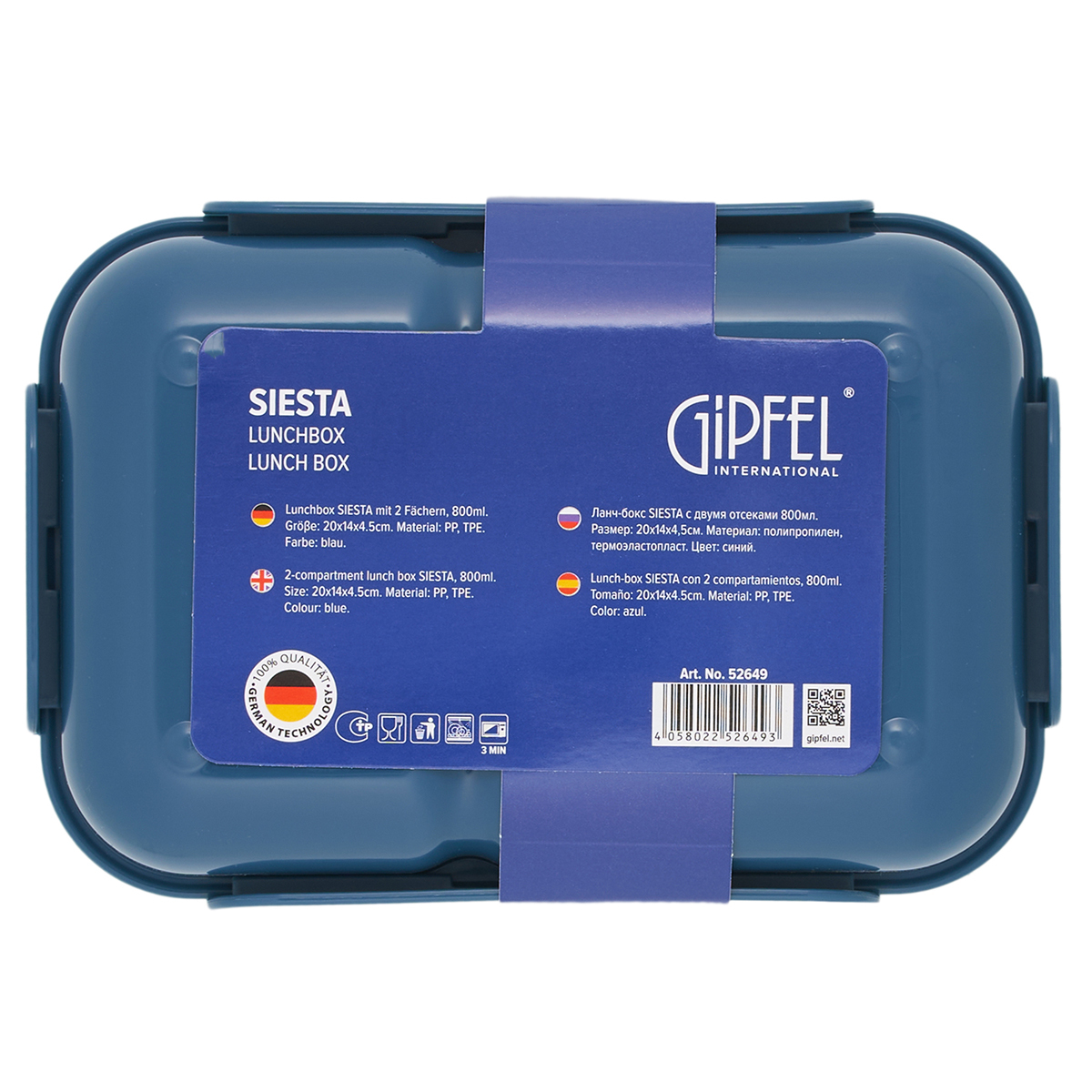 Ланч-бокс Gipfel Siesta с двумя отсеками 52649 800 мл. Объем рабочий в каждой секции: 270 мл и 400 мл. Размер: 20х14х4,5 см. Материал: полипропилен, термоэластопласт.
