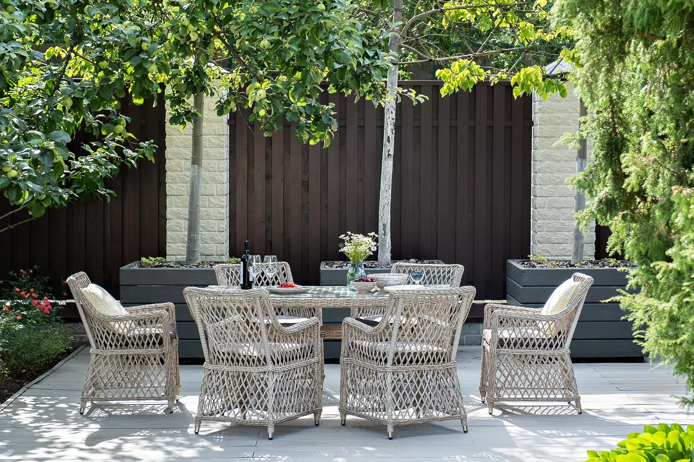 Ротанговая обеденная группа «Латте» для создания зоны отдыха в саду, обустройства веранды отеля или ресторана.