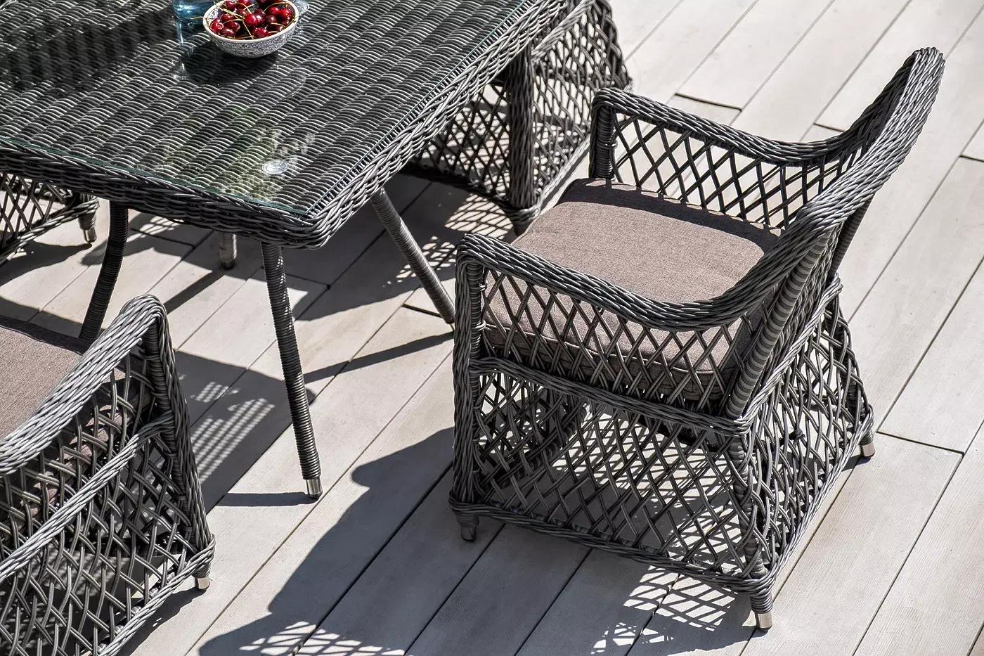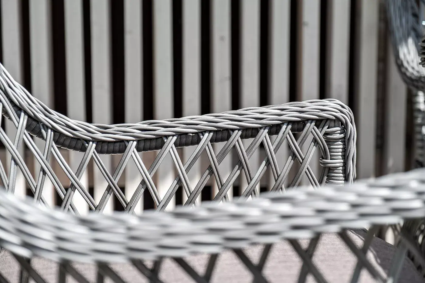 Надежность конструкции придает каркас из алюминия, обвитый ротангом графитового цвета.