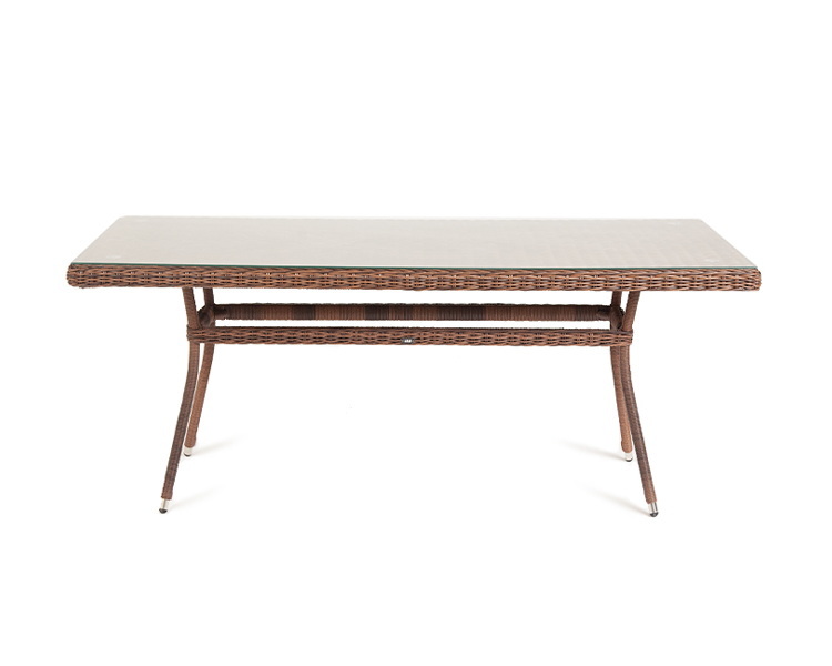 Каркас изделия изготовлен из прочного, но очень легкого алюминия, оплетенного вручную искусственным ротангом круглого плетения насыщенного шоколадного оттенка. Это долговечный материал, устойчивый к переменам погоды, атмосферным осадкам, прямым солнечным лучам. Благодаря ему стол можно использовать круглогодично под открытым небом.