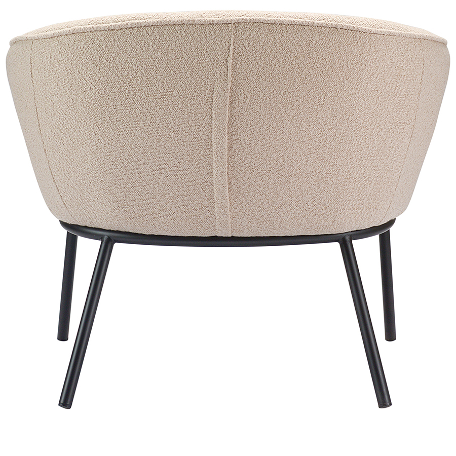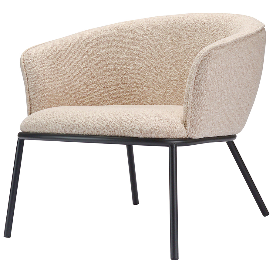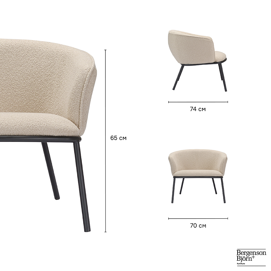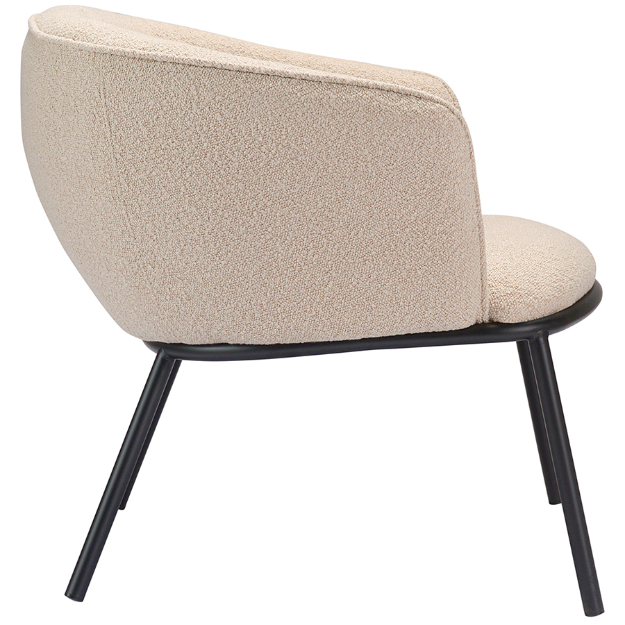 Лаунж-кресло Paal удачно сочетает в себе элементы современного и классического стилей. Изюминку модели придает сплошная спинка, плавно переходящая в подлокотники, и буклированная обивка. Такой дизайн обеспечивает не только оригинальный вид, а также комфорт при сидении и приятные тактильные ощущения. Светлая мебель с лаконичным силуэтом идеально вписывается в интерьер гостиной, рабочего кабинета или спальни, оформленных в скандинавском стиле, лофт, эклектика, фьюжн, неоклассика и др.