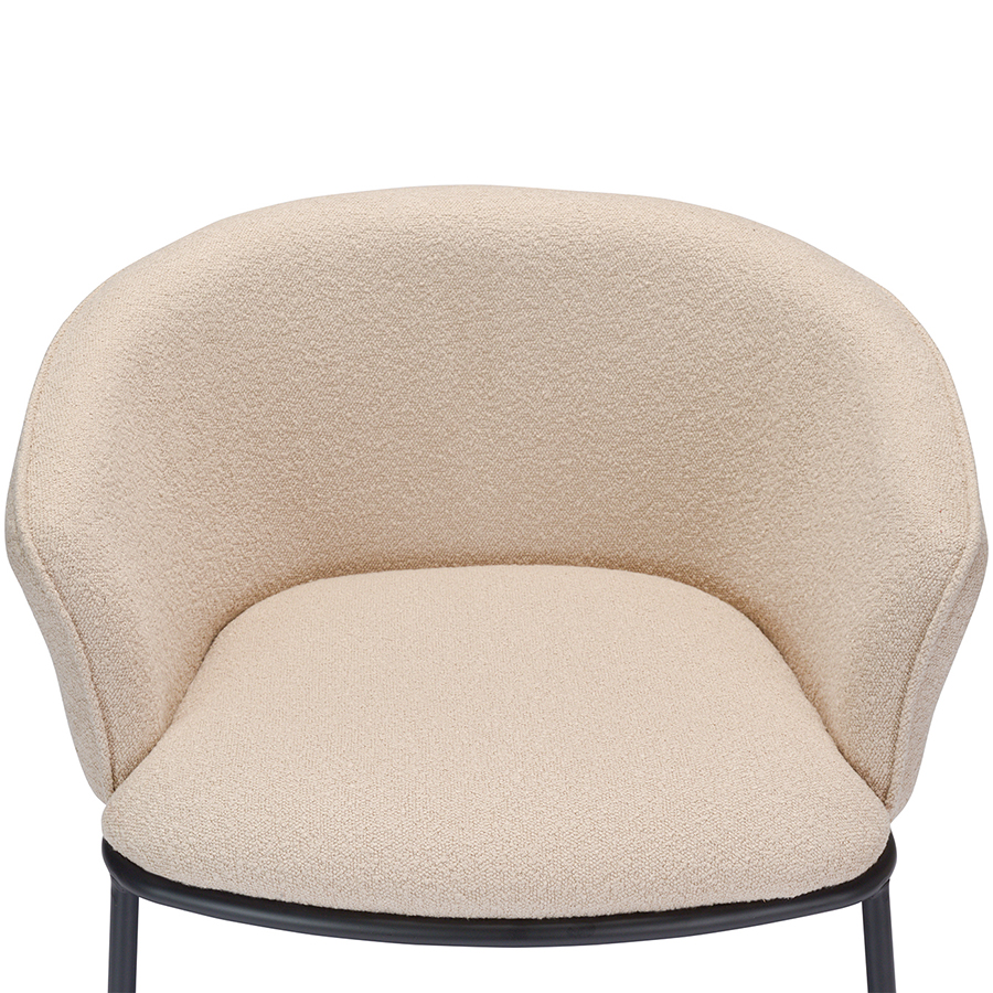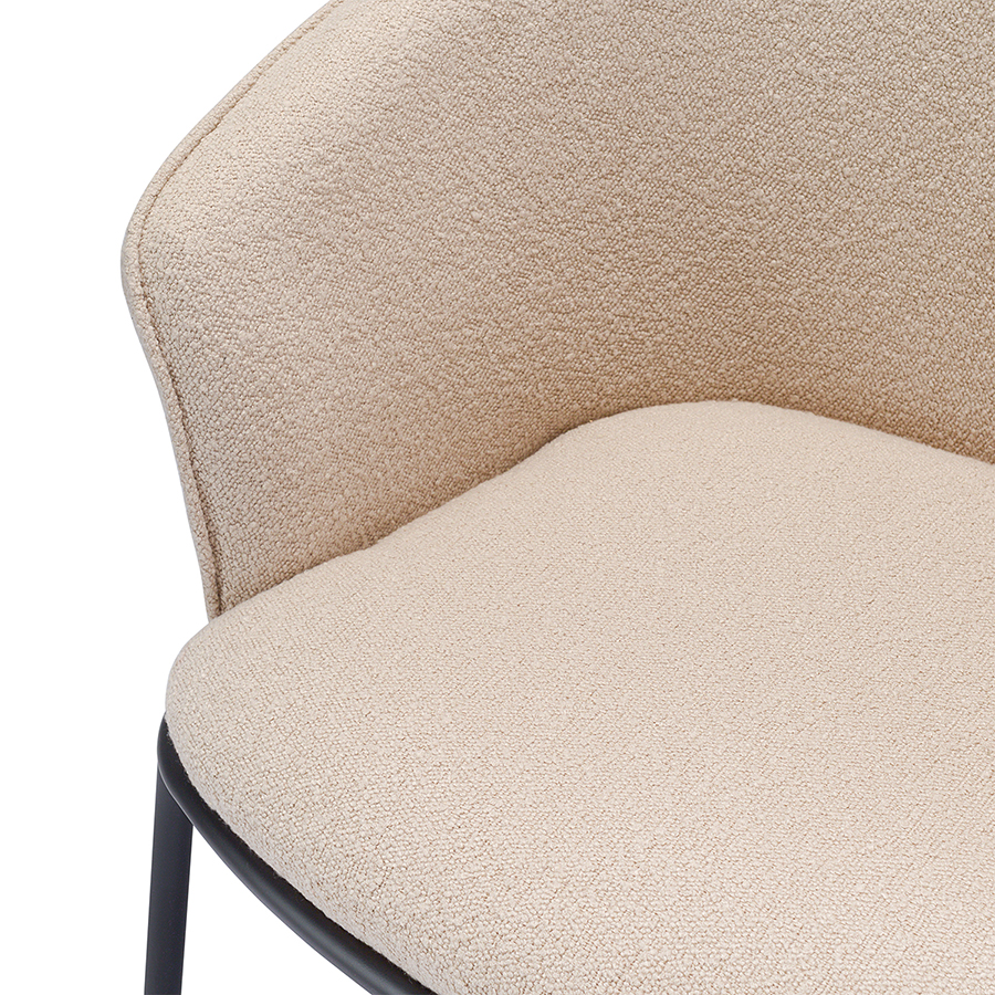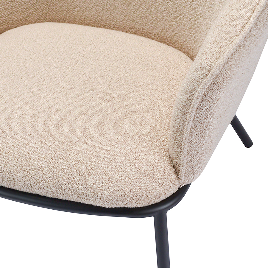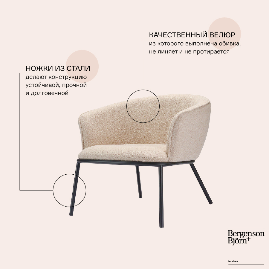 Лаунж-кресло Paal удачно сочетает в себе элементы современного и классического стилей. Изюминку модели придает сплошная спинка, плавно переходящая в подлокотники, и буклированная обивка. Такой дизайн обеспечивает не только оригинальный вид, а также комфорт при сидении и приятные тактильные ощущения. Светлая мебель с лаконичным силуэтом идеально вписывается в интерьер гостиной, рабочего кабинета или спальни, оформленных в скандинавском стиле, лофт, эклектика, фьюжн, неоклассика и др.