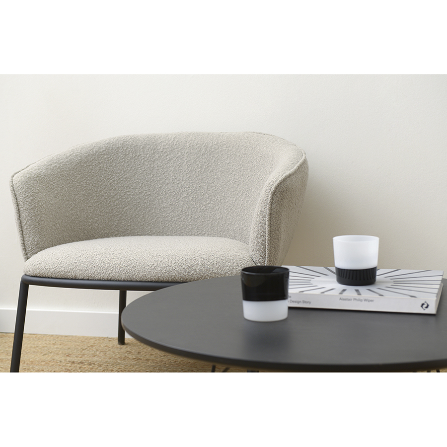 Лаунж-кресло Paal удачно сочетает в себе элементы современного и классического стилей. Изюминку модели придает сплошная спинка, плавно переходящая в подлокотники, и буклированная обивка. Такой дизайн обеспечивает не только оригинальный вид, а также комфорт при сидении и приятные тактильные ощущения. Светлая мебель с лаконичным силуэтом идеально вписывается в интерьер гостиной, рабочего кабинета или спальни, оформленных в скандинавском стиле, лофт, эклектика, фьюжн, неоклассика и др.
