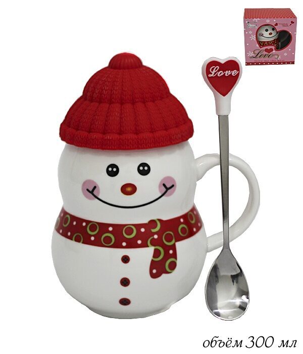 Lenardi 105-185 Кружка с силик. крышкой и ложкой СНЕГОВИК в под.уп.(х36)Фарфор