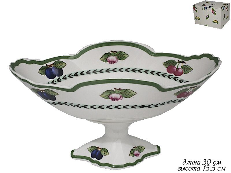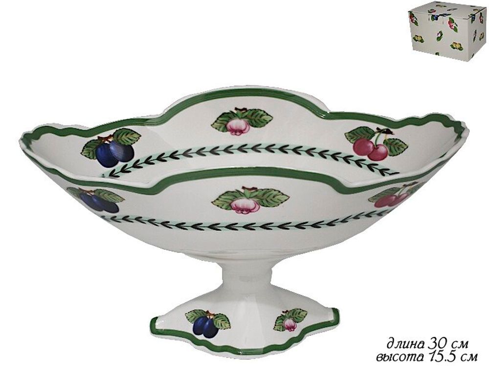 Lenardi 105-539 Фруктовница на ножке 30см. ФРУКТЫ в под.уп.(х12)Фарфор