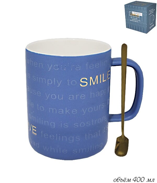 Lenardi 106-025 Кружка 400 мл с ложкой в под.уп.(х60)Фарфор