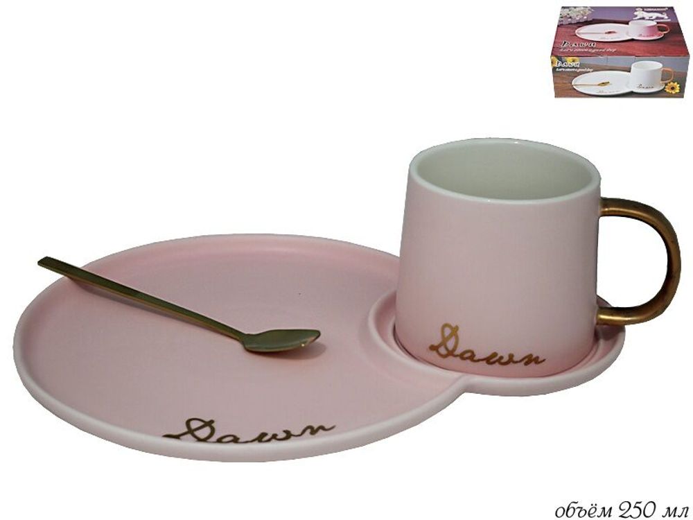 Lenardi 106-028 Чашка 250 мл с блюдцем и ложкой в под.уп.(х20)Фарфор
