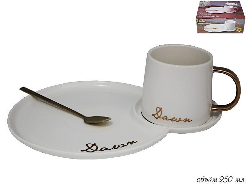 Lenardi 106-029 Чашка 250 мл с блюдцем и ложкой в под.уп.(х20)Фарфор