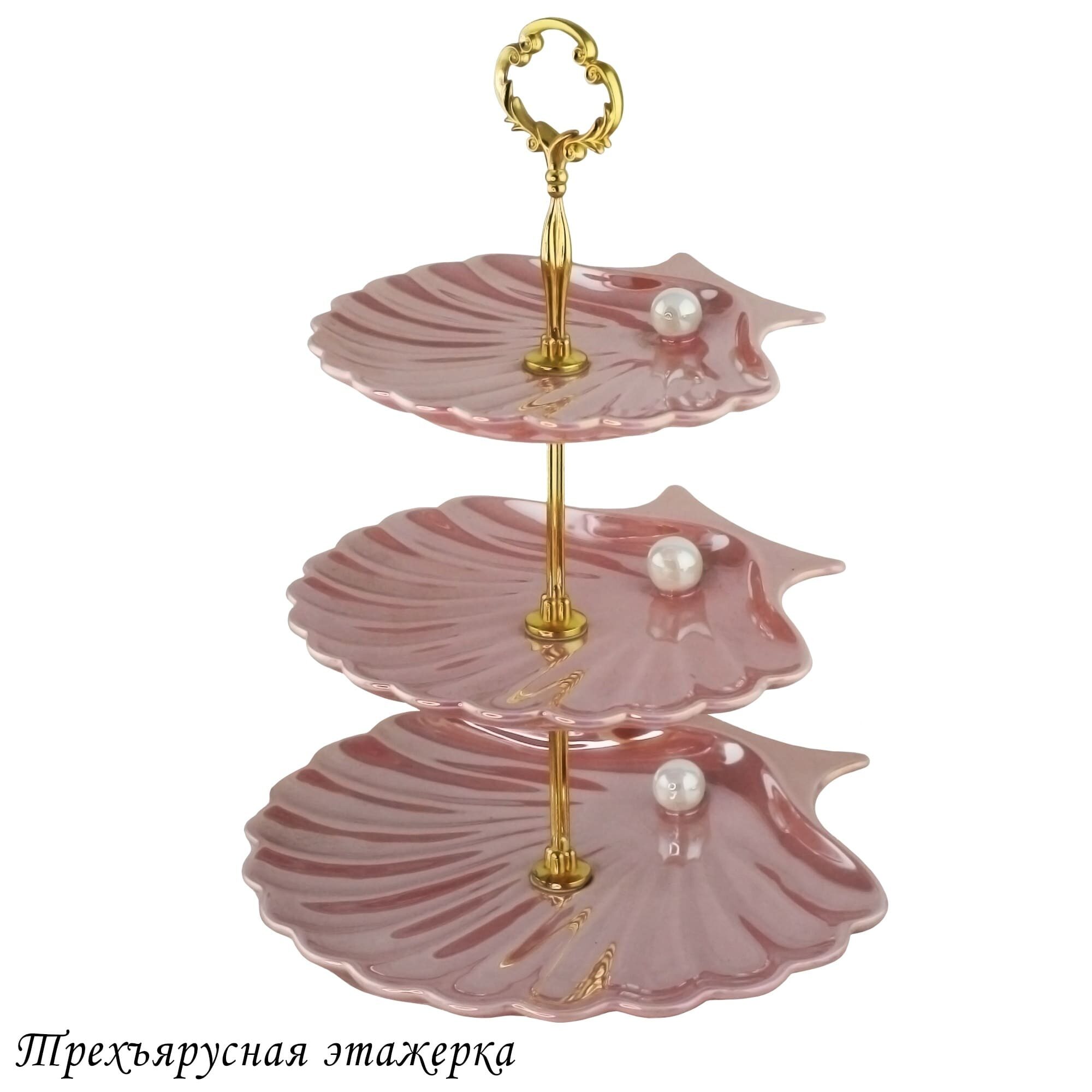 Lenardi 106-204 Трехъярусная этажерка ПЕРЛАМУТР в под.уп.(х12)Фарфор