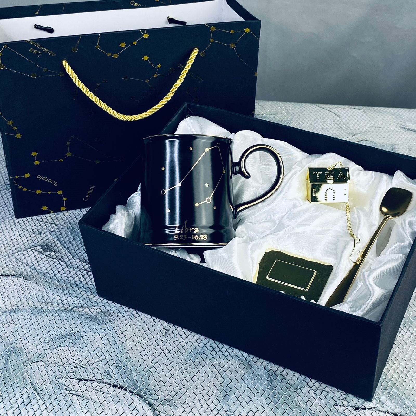 Lenardi 106-296 Кружка 360мл с ложкой и фильтром ВЕСЫ в под.уп.(х12)Фарфор