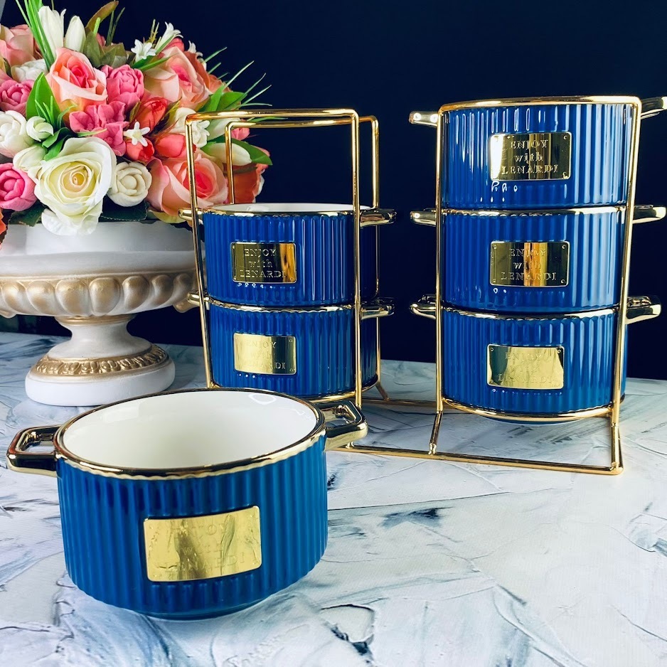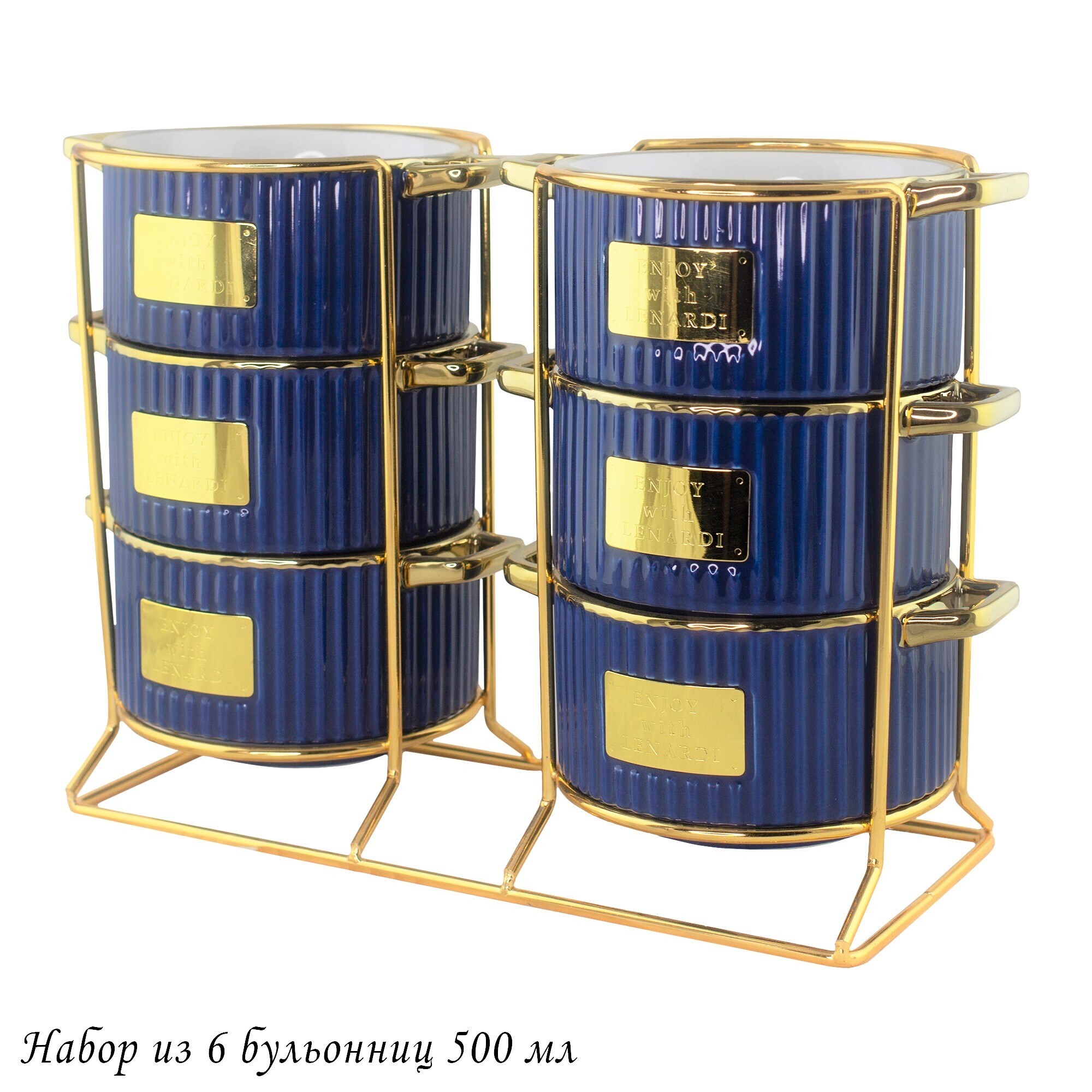 Lenardi 106-337 Набор из 6 бульонниц 500мл MULTICOLOR на подставке в под.уп.(х8)Фарфор
