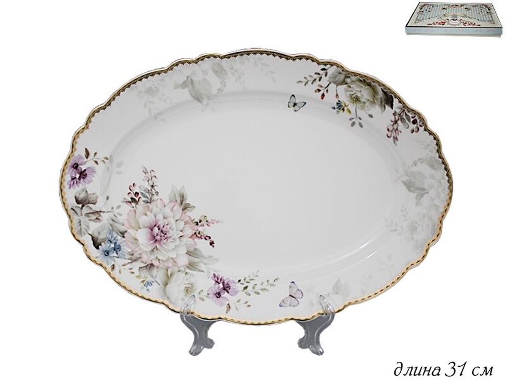 Lenardi 108-228 Овальное блюдо 31см. ХРИЗАНТЕМЫ в под.уп.(х18)Фарфор
