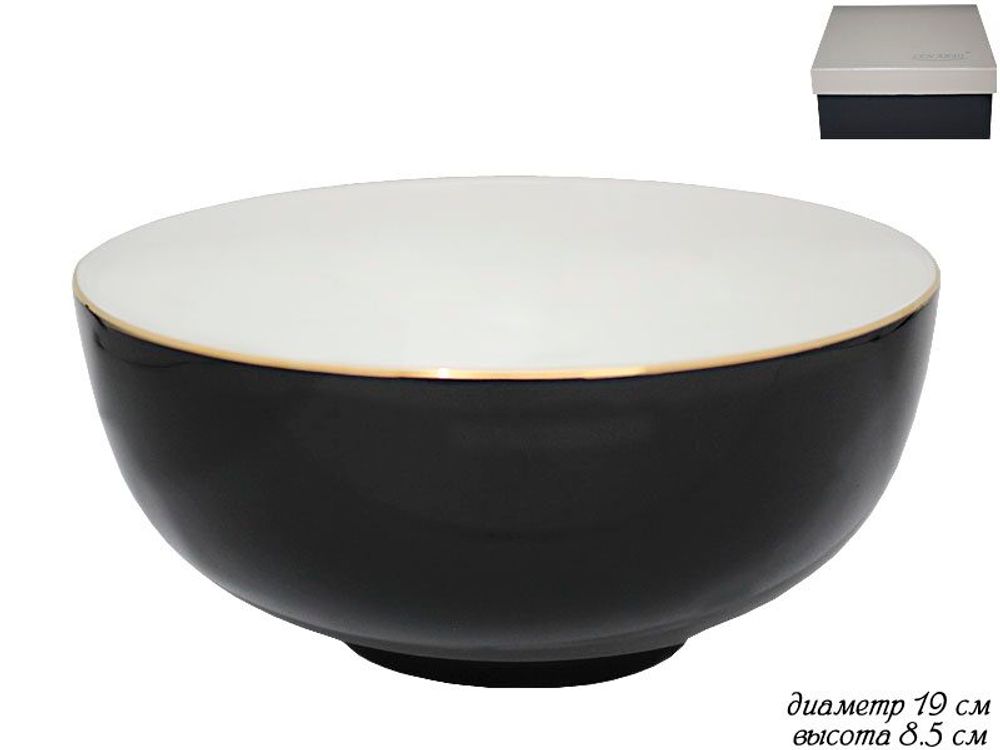 Салатник 19см, высота 6,5 см, серия BLACK: высококачественный фарфор, золотая обводка, элегантный черный декор, изящные формы