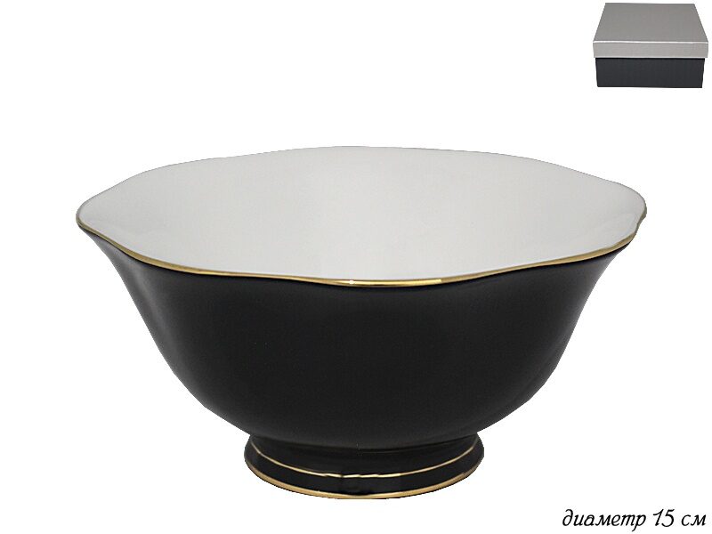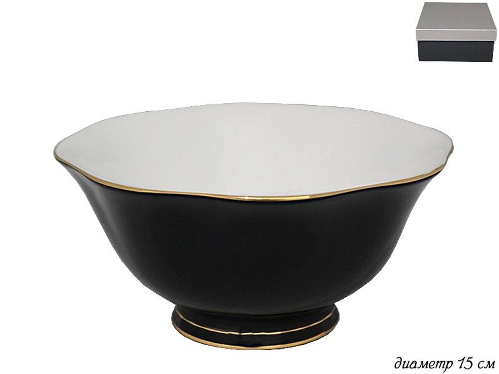 Салатник 15см, серия BLACK: высококачественный фарфор, золотая обводка, элегантный черный декор, изящные формы.