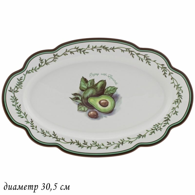 Коллекция «АВОКАДО» выполнена из белого фарфора. Стильный и модный дизайн с авокадо насыщенного зеленого цвета, флористическая обводка. Коллекция состоит из тарелок, овальных блюд, салатников, чайных и кофейных наборов