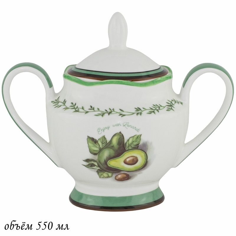 Коллекция «АВОКАДО» выполнена из белого фарфора. Стильный и модный дизайн с авокадо насыщенного зеленого цвета, флористическая обводка. Коллекция состоит из тарелок, овальных блюд, салатников, чайных и кофейных наборов