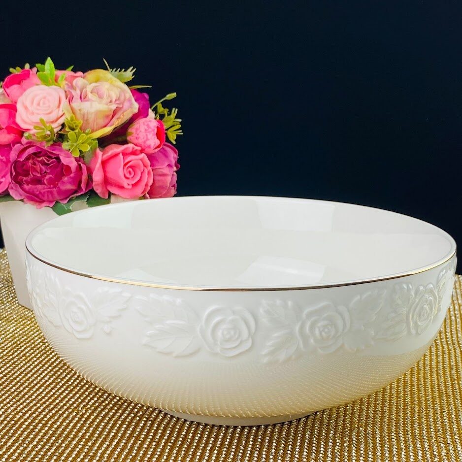 Посуда из серии БЕЛАЯ РОЗА выполнена из высококачественного Изделия простого лаконичного дизайна на бортике с изящным и объемным узором в виде распустившейся розы, по краю золотая отводка. В серии посуды из белого фарфора представлен широкий ассортимент товаров для сервировки стола, которые, несомненно, впишутся в любой интерьер.