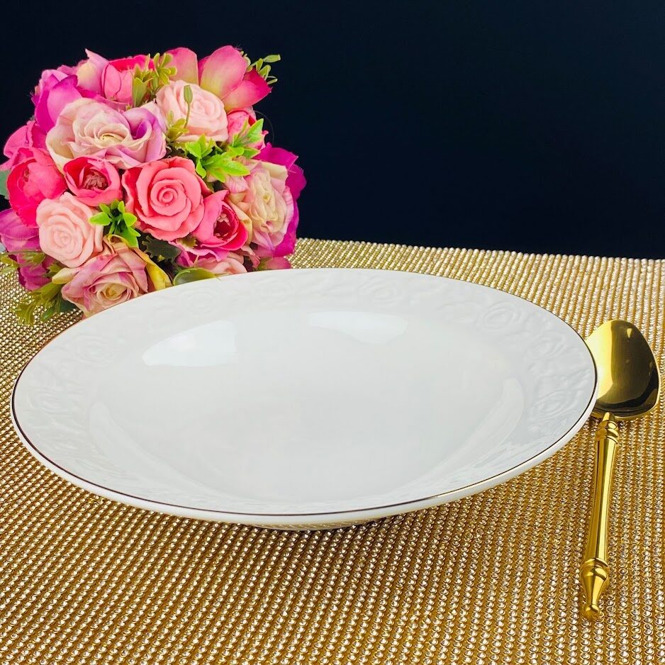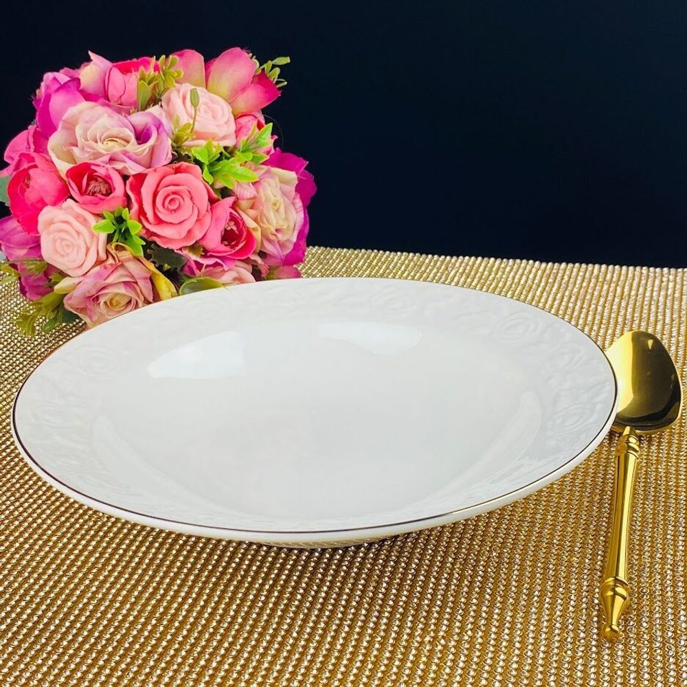 Посуда из серии БЕЛАЯ РОЗА выполнена из высококачественного Изделия простого лаконичного дизайна на бортике с изящным и объемным узором в виде распустившейся розы, по краю золотая отводка. В серии посуды из белого фарфора представлен широкий ассортимент товаров для сервировки стола, которые, несомненно, впишутся в любой интерьер.