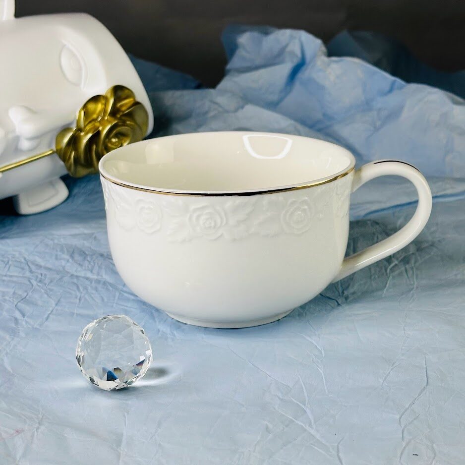 Не рекомендуется использовать в микроволновой печи и мыть в посудомоечной машине, по причине возможного повреждения золотого декоративного покрытия.