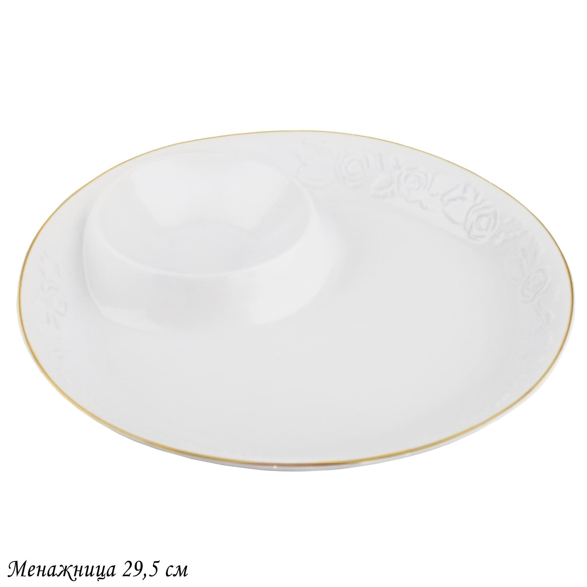 Посуда из серии БЕЛАЯ РОЗА выполнена из высококачественного Изделия простого лаконичного дизайна на бортике с изящным и объемным узором в виде распустившейся розы, по краю золотая отводка. В серии посуды из белого фарфора представлен широкий ассортимент товаров для сервировки стола, которые, несомненно, впишутся в любой интерьер.