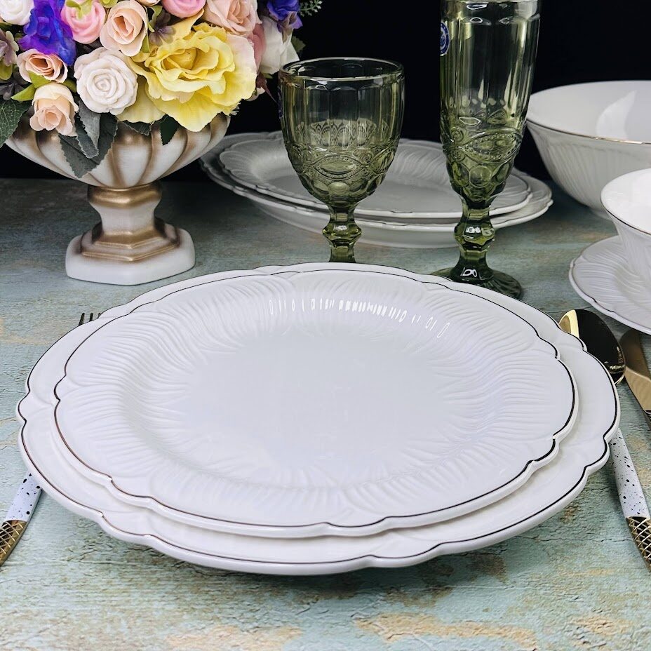 Коллекция посуды ORCHIDEA выполнена из белого фарфора, нежный цветочный орнамент, оплетает объемным рисунком ободок тарелок, борт салатников и других предметов. Нежная обводка золотом добавляет изящества изделиям. Материал: фарфор Не рекомендуется использовать в микроволновой печи и мыть в посудомоечной машине, по причине возможного повреждения золотого декоративного покрытия.