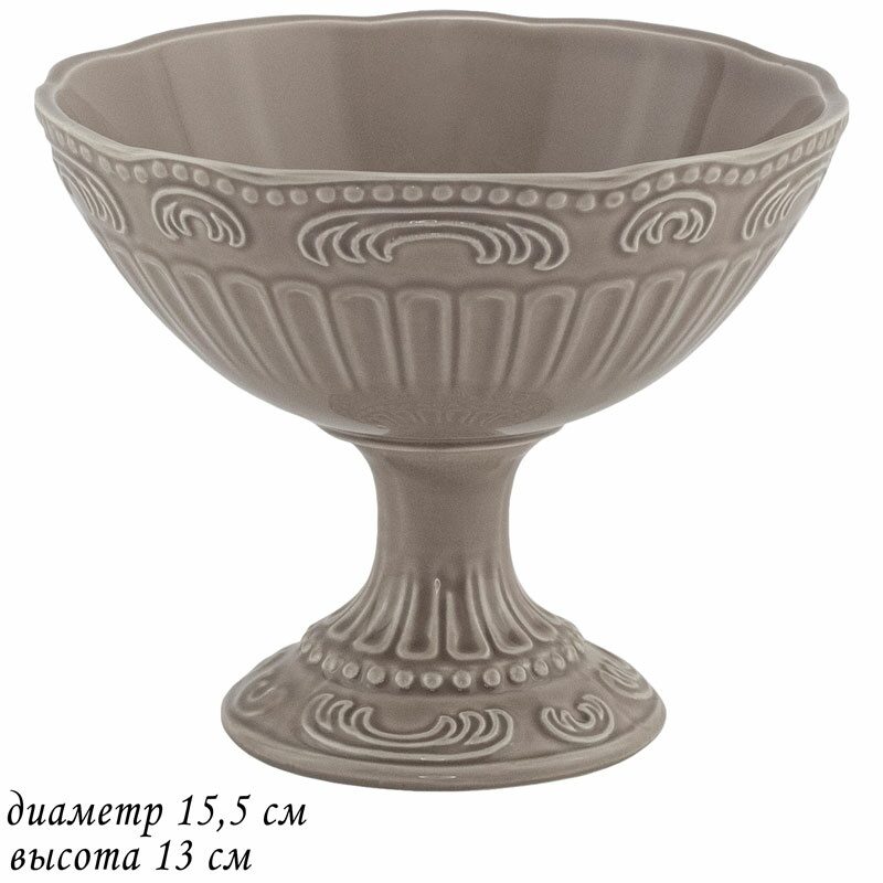Lenardi 110448 Конфетница на ножке15,5 см БАВАРИЯ серый в под.уп.(х12)Керамика