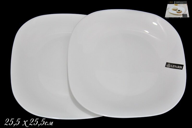 Lenardi 115-084 Набор из 2х квадратных тарелок 25,5см WHITE в под.уп.(х18)Опаловое стекло