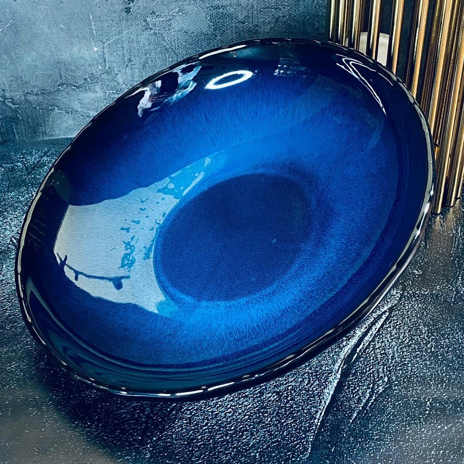 Коллекция AQUAMARINE изготовлена их фарфора, покрыта глянцевой цветной глазурью глубокого синего цвета с вкраплениями. Структура поверхности изделий имеет рельеф. Благодаря прочной и глянцевой глазури посуду легко мыть. Подходит для дома и для ресторанов.