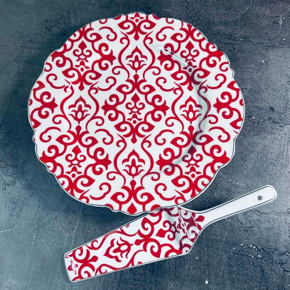 Lenardi 122-049 Тортовница 27 см с лопаткой в под.уп.(х12)Фарфор