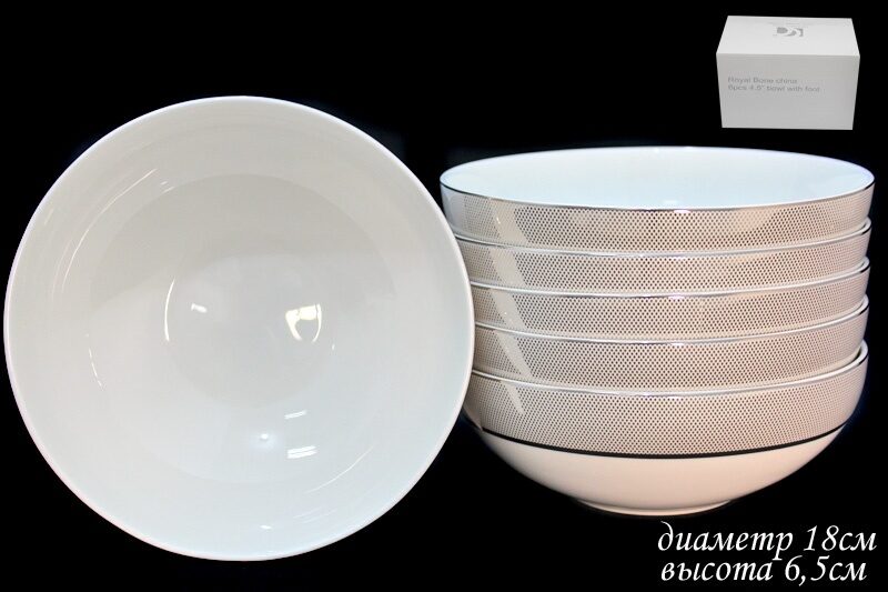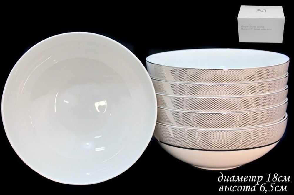 Lenardi 125-047 Набор из 6 салатников 18см. СЕРЕБРЯНАЯ СИМФОНИЯ в под.уп.(x12)(х6) Костяной фарфор