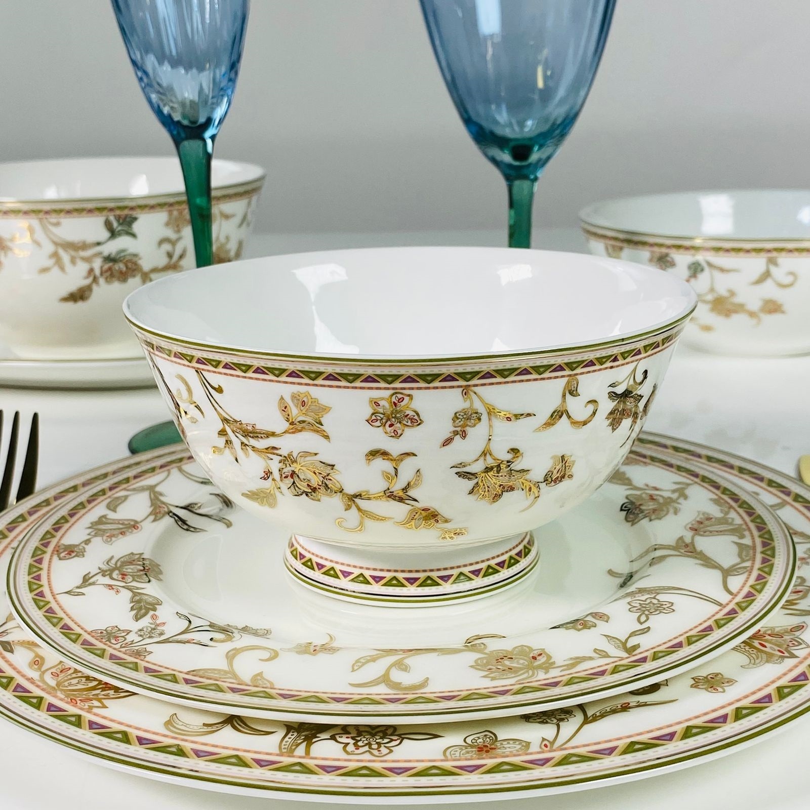 Не рекомендуется использовать в микроволновой печи и мыть в посудомоечной машине, по причине возможного повреждения золотого декоративного покрытия.
