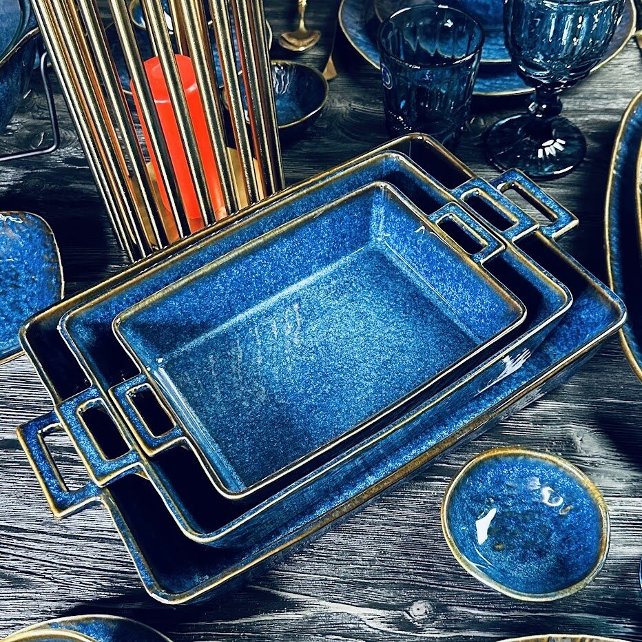 Коллекция AQUAMARINE изготовлена их фарфора, покрыта глянцевой цветной глазурью глубокого синего цвета с вкраплениями. Структура поверхности изделий имеет рельеф. Благодаря прочной и глянцевой глазури посуду легко мыть. Подходит для дома и для ресторанов.