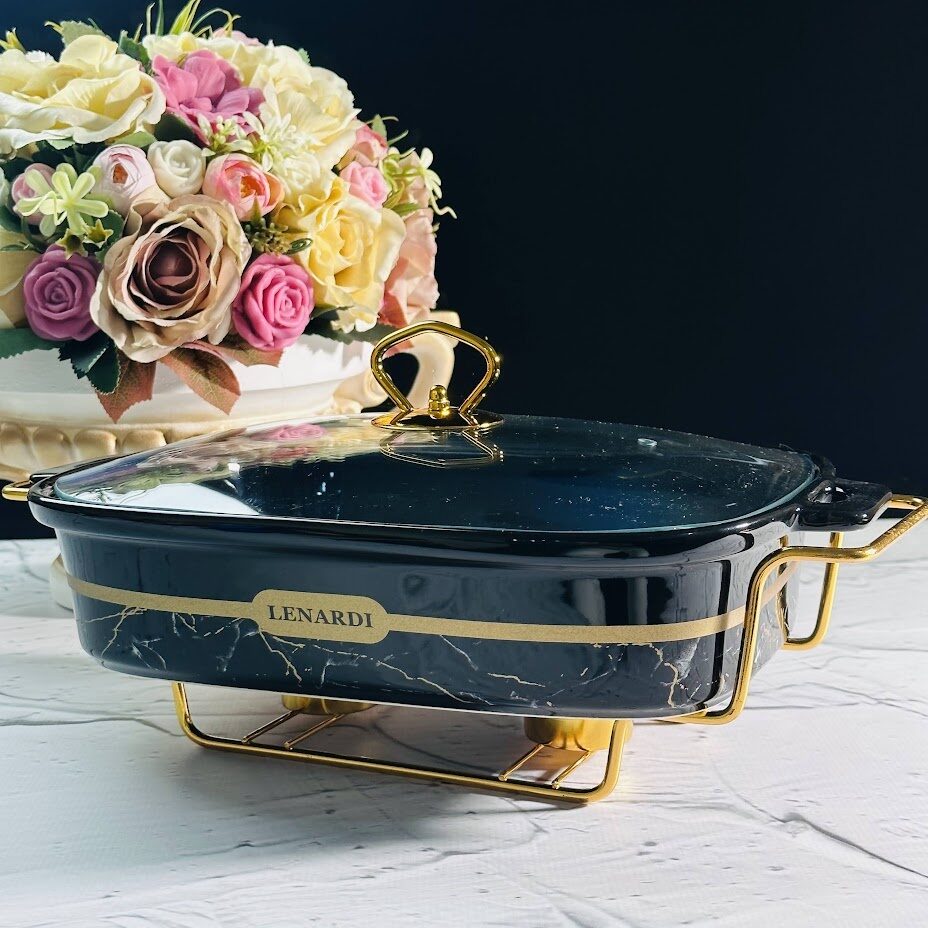 Lenardi 133-355 Прямоугольный сервировочный мармит 28см с крышкой на подставке в под.уп.(х6)Фарфор